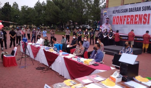 "Keempat tersangka tersebut terdiri dari dua ASN Dinas Kesehatan Sumut, IW dan KS, seorang ASN Kanwil Kemenkumham Sumut, SH, serta seorang swasta SW. Mereka dijerat dengan pasal suap," kata Kapolda.