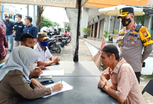 Bagi masyarakat yang didapati melanggar protokol kesehatan terutama yang tidak memakai masker, dilakukan pendataan. Kemudian terhadap mereka dilakukan sidang ditempat oleh Hakim Pengadilan Negeri Bangkinang, dengan perangkat sidang Hakim Ketua Ratna Dewi Dariani dan Panitera Nova Sianturi.
