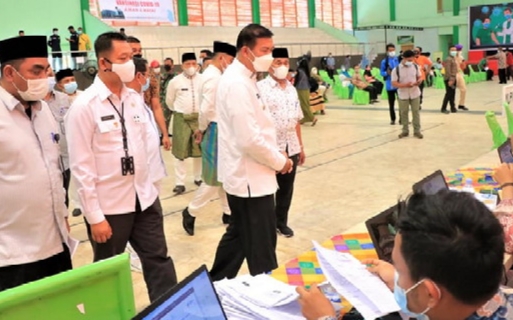 BNEWS - Walikota Pekanbaru, Firdaus, meninjau pelaksanaan vaksinasi massal di Universitas Islam Riau (UIR), Jumat (28/5/2021). Sebanyak 2.000 dosen, karyawan, dan mahasiswa menjalani vaksinasi massal tersebut.