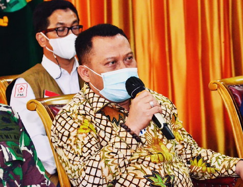 BNEWS - Bupati Kampar Catur Sugeng Susanto dan Forkopimda mengikuti rapat koordinasi secara virtual dengan Gubernur Riau (Gubri) tentang penanganan Covid-19 di Kabupaten Kampar, Jumat (28/5/2021).
