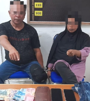 Pasangan suami istri yang diamankan aparat kepolisian ini adalah AR (44) dan istrinya NR (45). Dari tangan keduanya didapati barang bukti 1 paket sedang, 6 paket kecil dan 2 paket kecil sisa shabu seberat 4,04 gram, sejumlah peralatan penggunaan shabu serta uang tunai sebesar Rp 418 ribu.