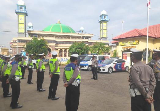 BNEWS - Ditlantas Polda Banten melaksanakan patroli pendisiplinan protokol kesehatan, untuk mencegah penyebaran Covid-19 melalui KRYD (Kegiatan Rutin yang Ditingkatkan) di tempat wisata Anyer, Serang. Minggu (30/05/2021).