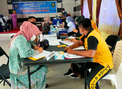 BNEWS - Polres Kampar kembali melakukan vaksinasi Covid-19. Kali ini untuk anggota Polri, keluarga dan lansia, Sabtu (5/6/2021) di Gedung Serbaguna Polres Kampar.