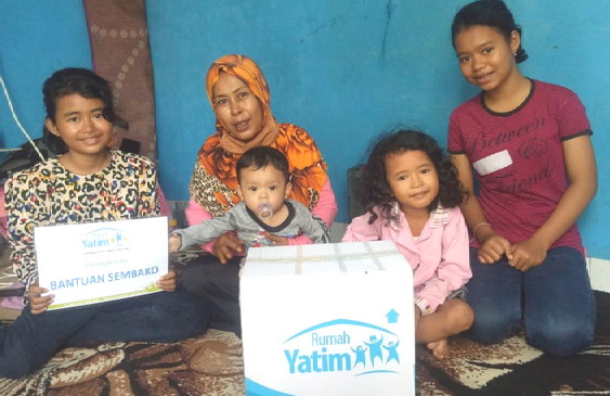 BNEWS - Rumah Yatim Cabang Riau menyalurkan bantuan bahan pokok kepada Solihati (48) seorang ibu yang membesarkan anak 5 anak seorang diri, Minggu (6/6/2021).