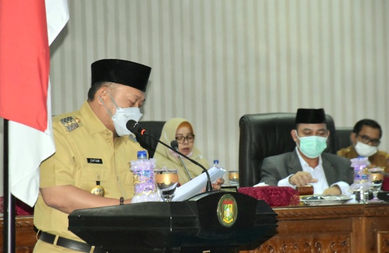 BNEWS - Bupati Kampar H Catur Sugeng Susanto SH, didampingi Forkopimda dan Sekretaris Daerah Kabupaten Kampar, Drs Yusri M.Si, hari ini Selasa (8/6/2021) mengikuti rapat Paripurna DPRD Kabupaten Kampar, tentang Rancangan Peraturan Daerah (Ranperda) Pertanggungjawaban Pelaksanaan APBD Kabupaten Kampar Tahun 2020.