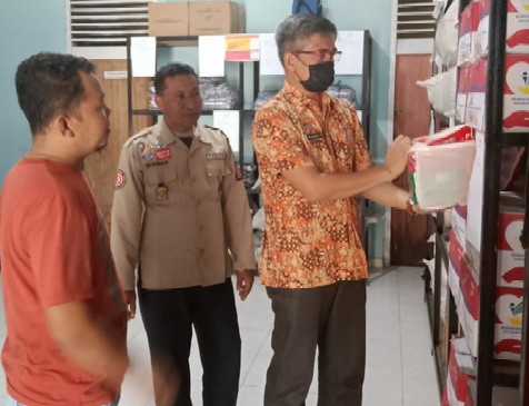 BNEWS - Kepala Dinas Sosial Kabupaten Kampar, Muhammad, meninjau ketersedian logistik dan peralatan penyelamatan bencana yang ada di Posko Tagana Kampar, Kamis (10/6/2021).