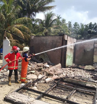 BNEWS - Kebakaran menghanguskan satu rumah, sepeda motor dan uang Rp 20 juta di Desa Pangkalan Baru, Kecamatan Siak Hulu, Kampar, Sabtu, (12/06/2021) siang.