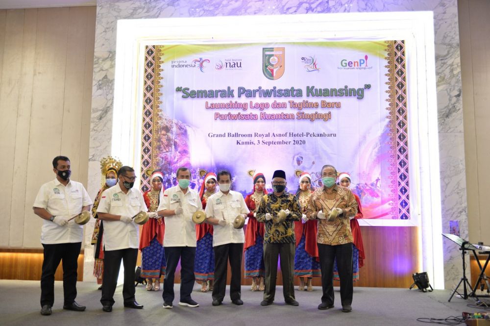 PEKANBARU - Gubernur Riau (Gubri) Syamsuar meresmikan logo dan tagline wisata baru yang dicanangkan oleh Kabupaten Kuantan Singingi (Kuansing) di Grand Ballroom Royal Asnof Hotel Pekanbaru.