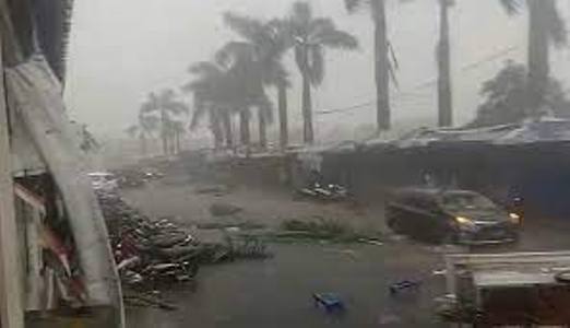 Angin kencang dilaporkan menyebabkan sejumlah tempat dagangan pakaian bekas (Cimol) terhempas angin. Namun tidak sampai menyebabkan bangunan roboh.