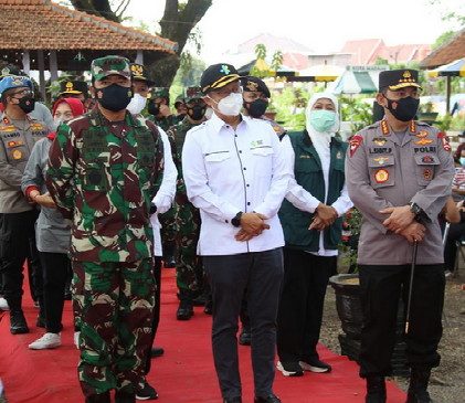 BNEWS - Kapolri Jenderal Listyo Sigit Prabowo bersama Panglima TNI Marsekal Hadi Tjahjanto, meninjau PPKM Mikro di Desa Bantengan, Kecamatan Wungu, Madiun, Jawa Timur, Jumat (18/6/2021).
