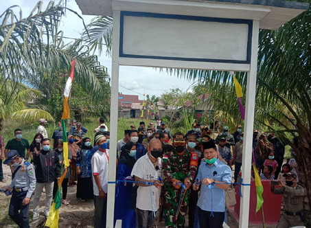 BNEWS - Dandim 1208/Sambas Letkol Inf Setyo Budiyono menghadiri kegiatan peresmian Jembatan Lima Berkemajuan dan pemberian bantuan tegel untuk Masjid Desa Nurul Iman, Segarau Parit, Kecamatan Tebas, Sambas, Sabtu (19/06/2021).