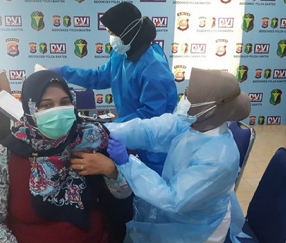BNEWS - Kepolisian Daerah (Polda) Banten terus melakukan vaksinasi massal kepada masyarakat umum, di wilayah hukum Polda Banten untuk memutus mata rantai penyebaran Covid-19.