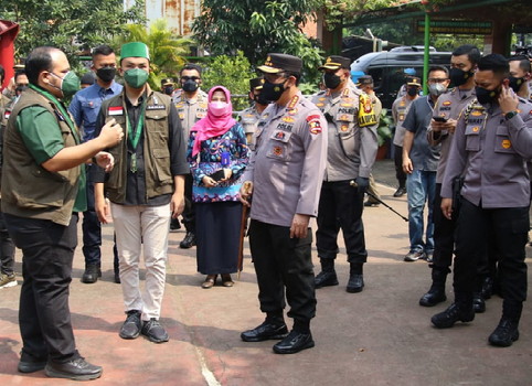BNEWS - Kapolri Jenderal Listyo Sigit Prabowo meninjau kegiatan kolaborasi vaksinasi massal antara Polri dengan PB Himpunan Mahasiswa Islam (HMI), di SMA Negeri 38 dan PB SEMMI (Serikat Mahasiswa Muslimin Indonesia) di Universitas Indraprasta, Jakarta, Kamis (15/7/2021).