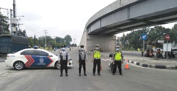 BNEWS - Satuan Lalu Lintas (Satlantas) Polresta Pekanbaru kembali melakukan penyekatan arus lalu lintas menuju Jalan HR Subrantas atau Panam, selama pelaksanaan PPKM Mikro.