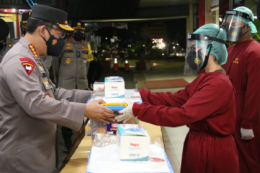 Pada kesempatan itu, Kapolri yang didampingi Kepala Rumah Sakit memberikan bantuan sembako dan vitamin kepada seluruh tenaga kesehatan yang berada di RS Polri.**/ara