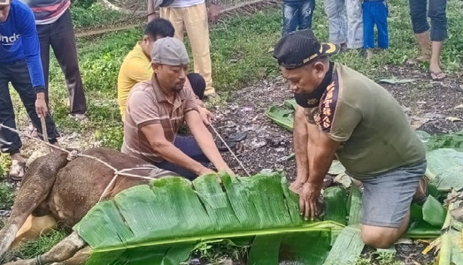 BNEWS - SDIT Milatul Khoir melaksanakan pemotongan hewan kurban yang merupakan bantuan Pemerintah Provinsi Riau, melalui DKM mesjid Raya Annur Pekanbaru, Selasa (20/7/2021).