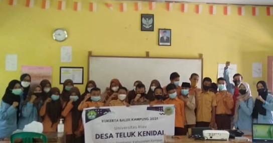 BNEWS - Mahasiswa Kukerta Balek Kampung Universitas Riau (UR) melaksanakan kegiatan belajar-mengajar untuk siswa-siswi SMPN I Teluk Kenidai, guna mendorong semangat belajar di masa pandemi ini, Rabu (21/07/2021).