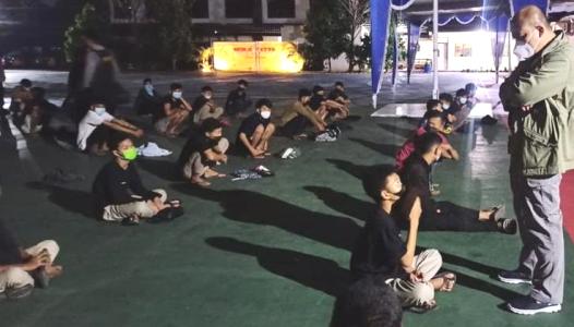 BNEWS - Sebanyak 40 pesilat dari sebuah perguruan silat diamankan jajaran Polres Karanganyar. Mereka berkonvoi di pintu barat obyek wisata Sondokoro, Kecamaayan Tasikmadu, Kabupaten Karanganyar, Minggu (25/7/2021) dini hari.