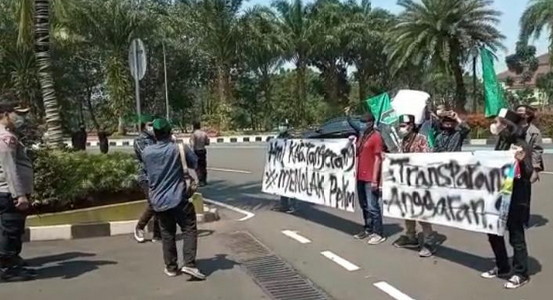 BNEWS - Aparat Polresta Tangerang, Polda Banten, mengamankan belasan mahasiswa yang tergabung dalam Himpunan Mahasiswa Islam (HMI), Selasa (27/7/2021), karena memaksa menggelar aksi demo di Kantor Bupati Tangerang.