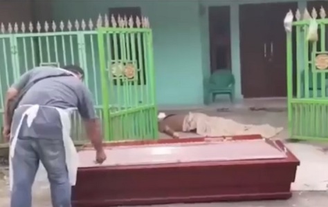 Petugas yang datang dengan menggunakan alat pelindung diri lengkap langsung memeriksa korban. Namun, sayang nyawa korban sudah tidak dapat diselematkan. Korban lalu langsung dimasukkan ke peti jenazah untuk dimakamkan dengan protokol Covid-19.