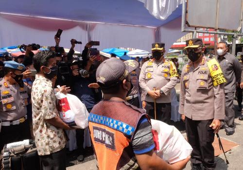 Di Posko pasar Cik Puan Komjen Arief sempat berdiskusi dengan warga dan pedagang yang dilihatnya cukup tertib dalam menjalankan protokol kesehatan. Kabaharkam juga berkesempatan memberikan Bansos paket sembako kepada masyarakat yang terdampak Pandemi covid-19.