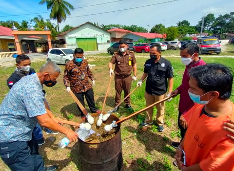 Narkotika yang akan dimusnahkan ini adalah tangkapan Satresnarkoba Polres Kampar dari tersangka KB dengan TKP di Desa Kasikan Kecamatan Tapung Hulu, pada Rabu malam (28/07/2021).