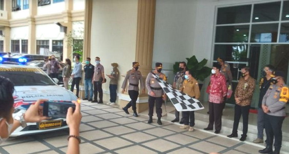 BNEWS - Kapolda Jambi Irjen Rachmad Wibowo dan Danrem 042/Garuda Putih (Gapu) Brigjen M Zulkifli, hari ini, Jumat (6/8/2021), melepas bantuan sebanyak 100 ton beras untuk masyarakat terdampak Covid-19.