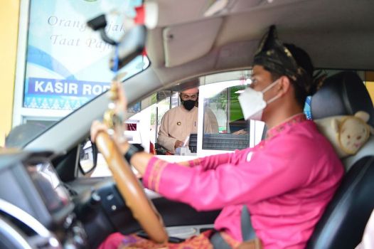 BNEWS - Gubernur Riau, Syamsuar, bersama Kapolda Riau, Irjen Pol Agung Setya Effendi, bertepatan dengan Hari Ulang Tahun (HUT) ke-64 Provinsi Riau, Senin (9/8/2021), melaunching pembayaran pajak melalui sistem drive thru.