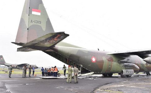 Pesawat Hercules C-130 dengan Pilot Mayor Pnb Aleg Chandra dari Skadron 31 Lanud Halim Perdanakusuma, mengangkut bantuan sebanyak 175 koli alat kesehatan, terdiri dari Oksigen Konsentrator dan Selang Nasal Cannula untuk Kota Padang dan Medan.