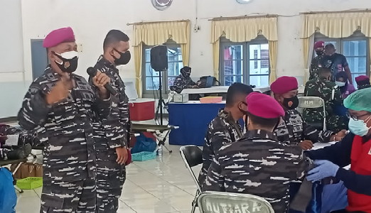 BNEWS - Dalam rangka mewujudkan Indonesia sehat bebas Covid-19, Pangkalan Korps Marinir (Lanmar) Surabaya menggelar kegiatan Donor Plasma Konvalesen dan Donor Darah secara serentak di Balai Prajurit Mako Lanmar Surabaya, Kamis (12/08/2021).