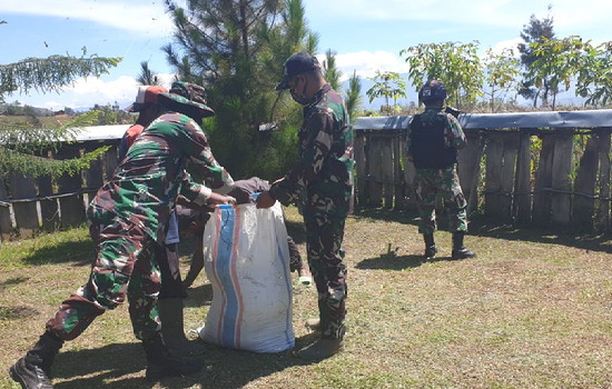 Seperti halnya Prajurit TNI Satgas Pamrahwan Yonif RK 751/VJS bersama masyarakat Walesi pada Sabtu (14/08/2021) pagi, melaksanakan gotong royong (Goro) membersihkan Kantor Distrik Walesi, Kabupaten Jayawijaya, Papua.