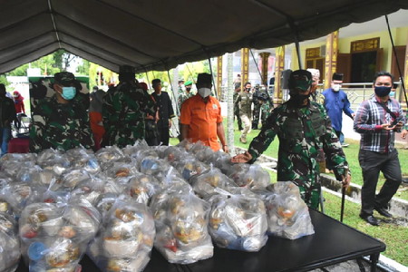 "Bantuan ini, sebelumnya akan kita masak dulu di dapur umum setelah itu baru disalurkan kepada masyarakat, yang langsung dibagikan oleh petugas dapur umum, terdiri dari Babinsa, Babinkantimas, Tagana," ujarnya.