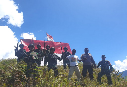 BNEWS - Menyambut HUT RI ke-76 tahun 2021, aparat TNI dari Pos Kanggime Satgas Pamrahwan Yonif RK 751VJS bersama Pos Koramil dan Pospol Kanggime, Napak Tilas pembuatan Tugu Merah Putih di puncak Gunung Ligimba, Distrik Kanggime, Kab. Tolikara, Papua.