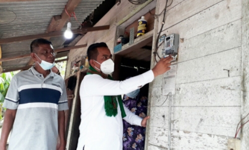 BNEWS - Ratusan kepala keluarga (KK) di Desa Petodaan dan Desa Kuala Panduk, Kecamatan Teluk Meranti, Kabupaten Pelalawan, akhirnya bisa menikmati aliran listrik di rumah mereka dan diresmikan langsung oleh Bupati Pelalawan, Zukri.