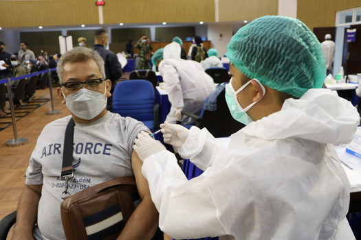 BNEWS - Dalam rangka mendukung percepatan vaksinasi sebagai salah satu langkah menyelesaikan pandemi Covid-19, vaksinasi massal bagi masyakat umum serta pelaku pariwisata dan ekonomi kreatif (Parekraf) kembali digelar di GOR Widya Dirgantara, Seskoau, Lembang, Bandung Barat, Sabtu (21/08/2021).
