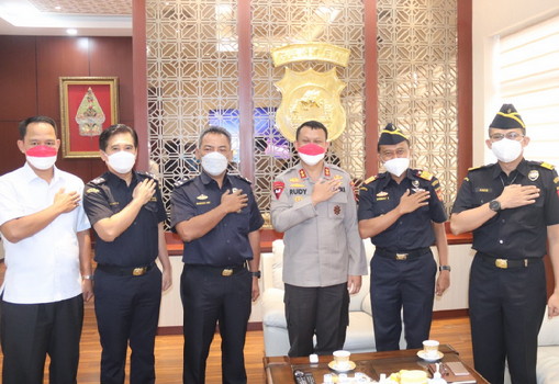 BNEWS - Kapolda Banten Irjen Pol. Rudy Heriyanto Adi Nugroho didampingi Dirreskrimsus Polda Banten Kombes Pol Dedi Supriyadi, menerima kunjungan Kakanwil Bea Cukai Provinsi Banten di Ruang Kerja Kapolda, Senin (23/08/2021).