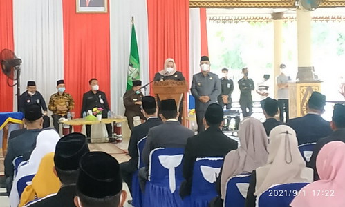 BNEWS - Bupati Bengkalis, Kasmarni, melantik sebanyak 285 pejabat struktural, terdiri dari pimpinan tinggi pratama administrator dan pengawas di lingkungan Pemerintah Kabupaten Bengkalis, di Balai Kerapatan Adat Wisma Daerah Bengkalis, Rabu (1/8/2021).