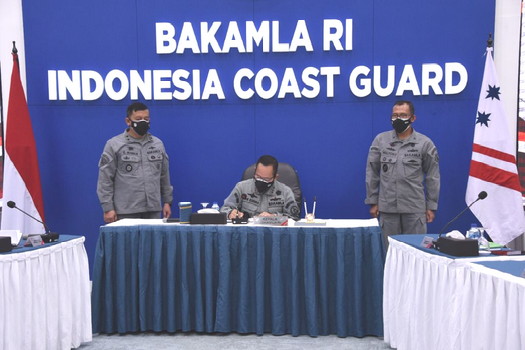 Penandatanganan diawali oleh Laksdya TNI Aan Kurnia, dan secara simbolis diikuti oleh Sestama Bakamla RI Laksda TNI S. Irawan, Inspektur Bakamla RI Laksma Bakamla Mulyono.