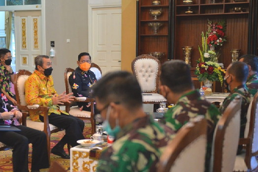 BNEWS - Gubernur Riau (Gubri), Syamsuar menerima kunjungan Tim Litbang Pusat Teritorial (Pusterad) TNI AD dalam rangka melaksanakan kajian pembentukan Kodam baru di Provinsi Riau, Kamis (9/9/2021), di Kediaman Dinas Gubernur Riau, Jalan Diponegoro Pekanbaru.
