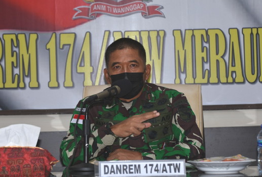 Sebelum menerima paparan dari para Dandim, Danrem Merauke menyampaikan arahan dari Presiden Jokowi, yang pada intinya menyatakan bahwa di lima wilayah yang berada di Provinsi Papua harus dilakukan percepatan Vaksinasi Covid-19 dan mendukung pelaksanaan PON XX Tahun 2021.