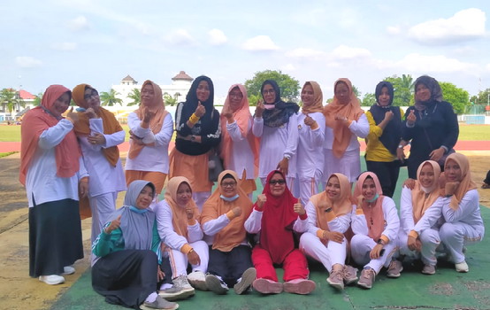 BNEWS - Memperingati Hari Olahraga Nasional, Dharma Wanita Persatuan (DWP) Unit Pelaksana Sekretariat Daerah Kampar, mengadakan acara senam bersama di Stadion Tuanku Tambusai Bangkinang Kota, Jumat (10/9/2021).
