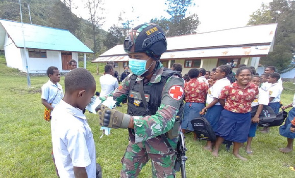 BNEWS - Mencegah penyebaran penularan Virus Covid-19 saat ini sudah menjadi tugas bersama, begitu juga yang dilakukan oleh Satgas TNI Yonif RK 751/VJS kepada para siswa-siswi yang berada di SMP Negeri Bolakme, Distrik Bolakme, Kabupaten Jayawijaya, Papua, Jumat (17/09/2021).
