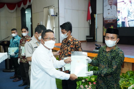 Hal ini disampaikan Bupati Kampar diwakili oleh Staf Ahli Bupati Bidang Kemasyarakatan dan SDM, Bustan, saat menyerahkan secara simbolis sertifikat hak atas tanah program redistribusi tahun 2021 yang dilaksanakan di Balai Bupati Kampar, Kecamatan Bangkinang Kota, Rabu (22/9/2021).