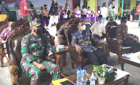 Sementara, Bupati Bengkalis yang diwakili oleh Wakil Bupati Bengkalis Bagus Santoso menyampaikan, untuk target vaksinasi di wilayah Kabupaten Bengkalis yang berjumlah 500 ribuan lebih saat ini, baru tercapai sekitar 5 persen. Dengan adanya serbuan vaksinasi TNI-Polri, ini diharapkan target tersebut bisa segera terpenuhi.