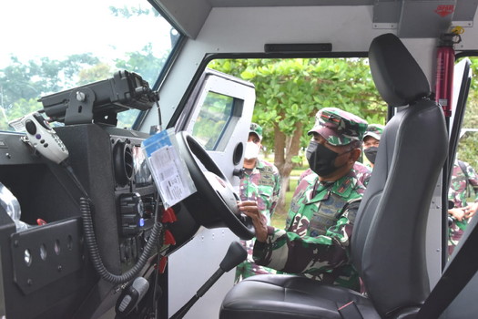 Danrem didampingi para Kepala Seksi Korem 174 Merauke melakukan pemeriksaan kendaraan taktis dan uji coba operasional kendaraan tersebut ke Venue PON XX dan lokasi pembangunan Rumah Sakit Modular di Merauke, Kamis (23/9/2021).