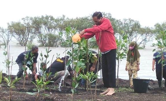 "Rehabilitasi mangrove ini akan terus kita lakukan. Tahun 2021 ini kita akan melakukan rehabilitasi mangrove di seluruh tanah air, sebanyak 34.000 hektar," kata Presiden.