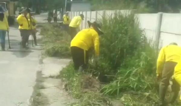 Sehari sebelumnya, pasukan kuning fokus membersihkan drainase di sepanjang Jalan Soebrantas. Puluhan anggota pasukan kuning dikerahkan untuk mempercepat pembersihan drainase.