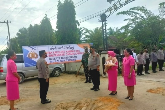 BNEWS - Kapolres Kampar AKBP Rido Purba didampingi Ketua Bhayangkari Cabang Kampar Patar Reniva Beatrick Sihite, melakukan kunjungan kerja (kunker) ke Polsek Tapung.