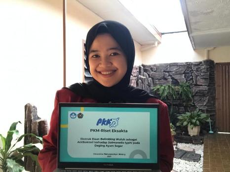 BNEWS - Salah satu tim Program Kreatifitas Mahasiswa-Riset (PKM-RE) dari Universitas Muhammadiyah Malang (UMM) berhasil meneliti dan menciptakan antibakterial yang cukup ampuh untuk daging ayam.