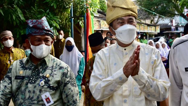 BNEWS - Gubernur Riau (Gubri) Syamsuar menyerahkan bantuan sosial untuk anak Panti Asuhan Putra Muhamadiyah Bangkinang, Kabupaten Kampar, Jumat (8/10/2021). Bantuan ini berupa biaya makan dari APBD Riau tahun 2021 yang disalurkan melalui Dinas sosial (Dinsos) Riau.
